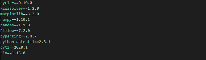 위의 명령어를 실행할 경우 아래와 같은 내용의 requirements.txt 파일이 생성된다.