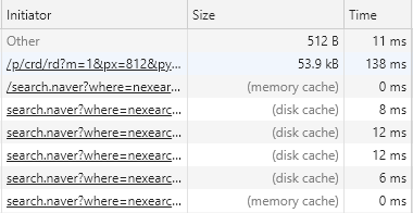 캐싱 기능을 적용하면 아래와 같이 개발자도구 네트워크 탭에서 memory cache 또는 disk cache 로그를 확인할 수 있다