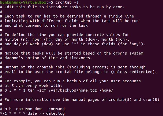 */1 * * * * date >> date.log 2>&1