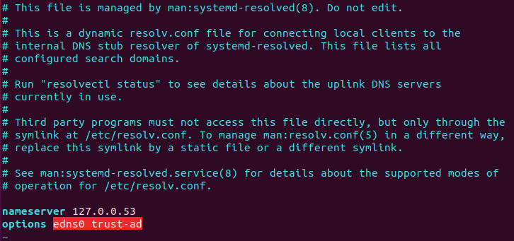 우선 /etc/resolv.conf 파일에 DNS를 확인하기 위한 네임 서버 주소가 저장되어 있다.