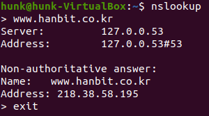 이를 간단하게 테스트 하기 위해 우선 한빛미디어의 IP 주소를 nslookup을 통해 알아오자.