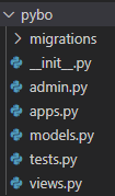 pybo 앱 관련 폴더가 생성됨을 확인할 수 있다.