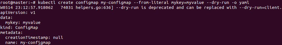 $ kubectl create configmap my-configmap --from-literal mykey=myvalue --dry-run -o yaml >my-configmap.yaml