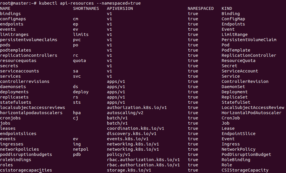 --namespace 옵션을 명시하지 않으면 모두 default 네임스페이스에서 수행된다.