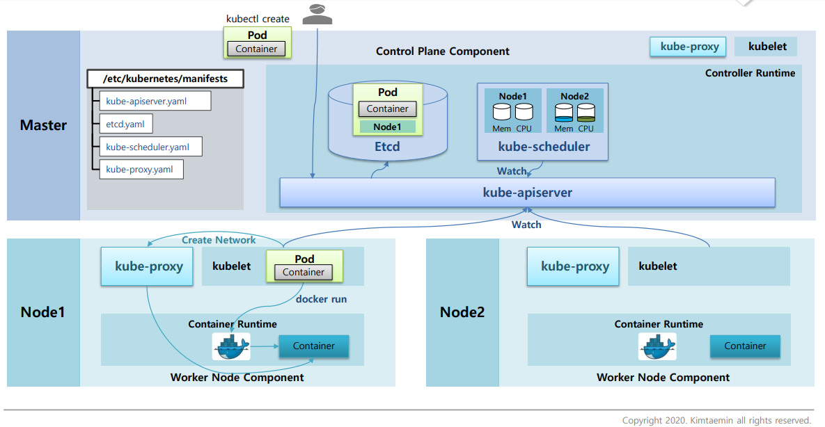 - 요청자가 kubectl create 명령어로 파드 생성 요청