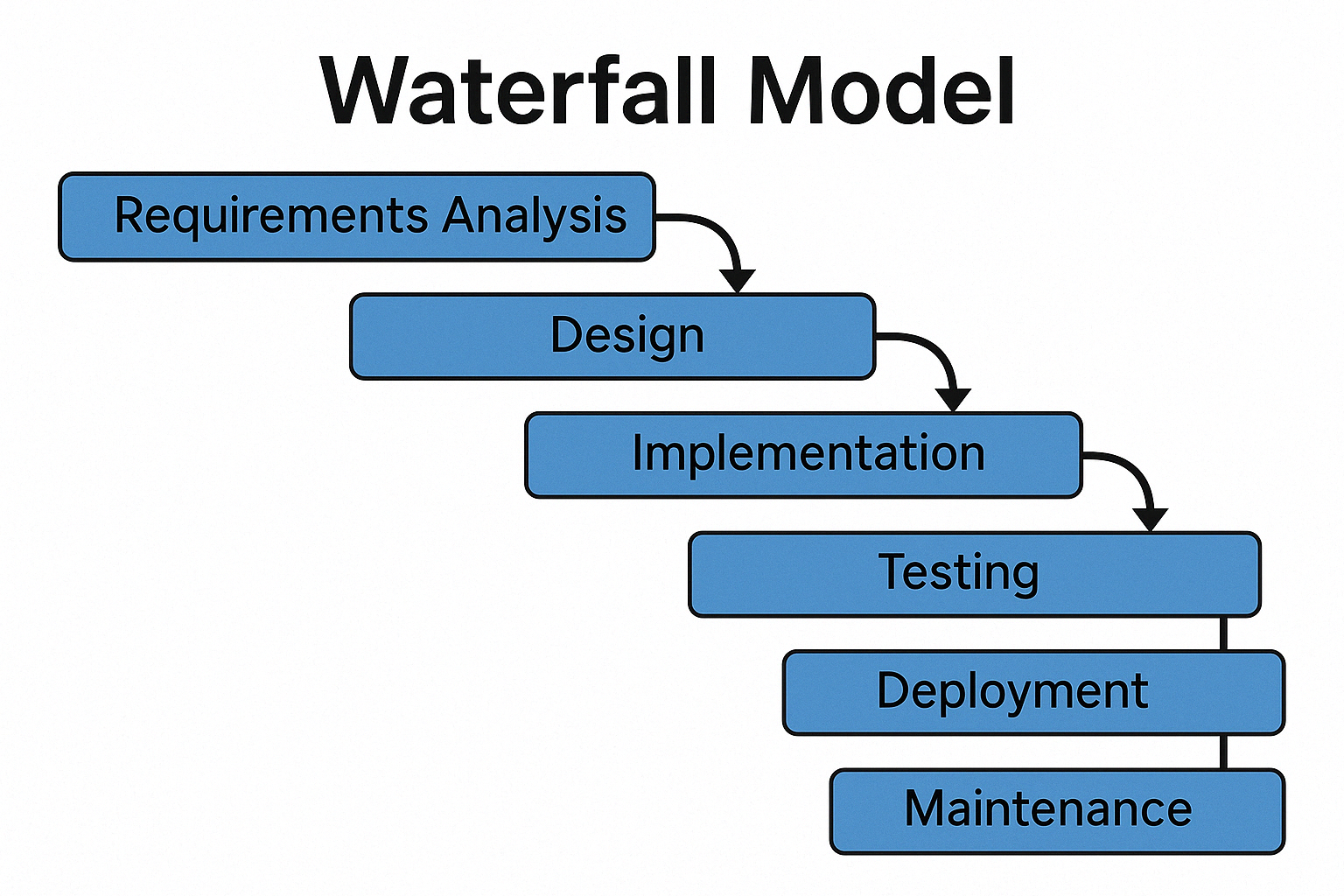 폭포수 모델은 개발 단계를 순차적으로 수행하는 전통적인 방식의 소프트웨어 개발 방법론으로 각 단계가 완료되어야 다음 단계로 넘어갈 수 있으며, 마치 폭포수가 위에서 아래로 흐르듯, 한 단계가 끝나야 다음 단계로 넘어갈 수 있다.