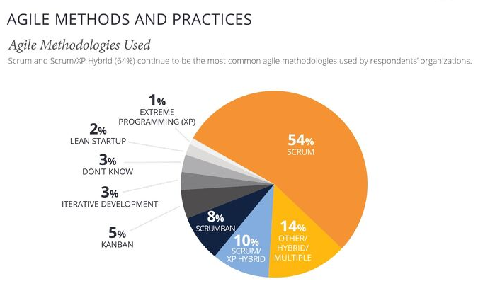 - 스크럼 - 30일마다 동작 가능한 제품을 제공하는 스프린트(Sprint)를 중심으로 하고 있다. 매일 정해진 시간에 정해진 장소에서 짧은시간의 개발을 하는 팀을 위한, 프로젝트 관리 중심의 방법론이다.